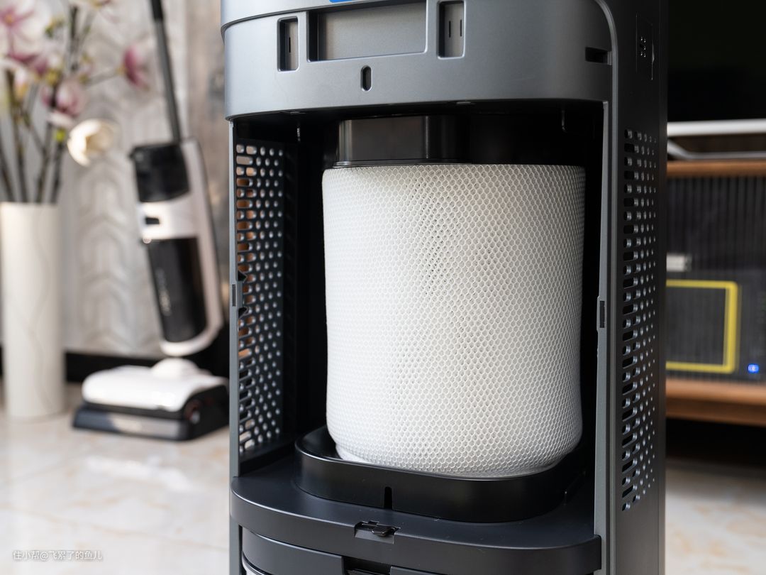 接水盘下方就是出风口了,因为结构原因,352 H300不会纵向送风,而是向四周360°送风,理论上更容易扰动室内气流,提升大空间的空气净化和加湿速度。