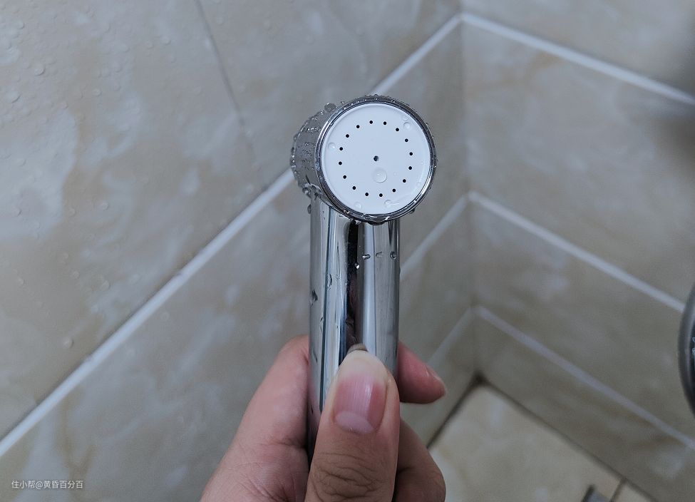 另外,九牧花洒的喷枪放在了固定支架上,还是显得比较突兀,而且喷枪并不具有加压出水功能。