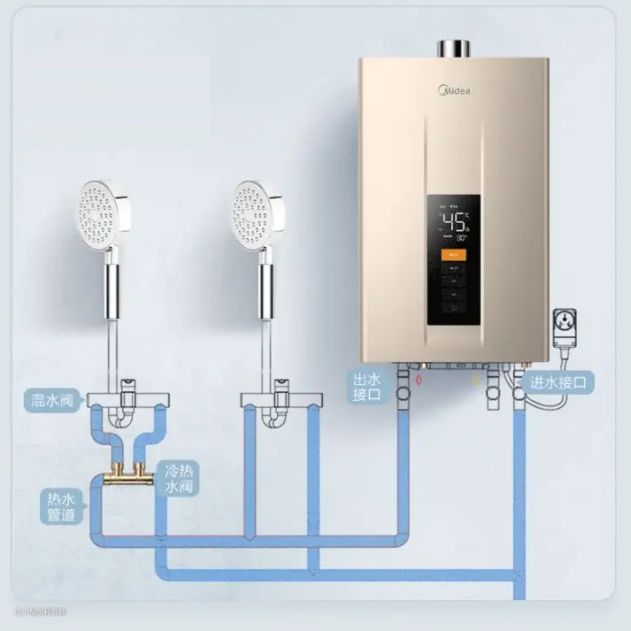 - 平衡式:有个独立的鼓风机,把外面新鲜的空气输送进来燃烧,需要配置烟道将废气排放出去,这样做的好处是燃气热水器进气、排气独立运行,安全性高,缺点是价格较高,安装复杂。