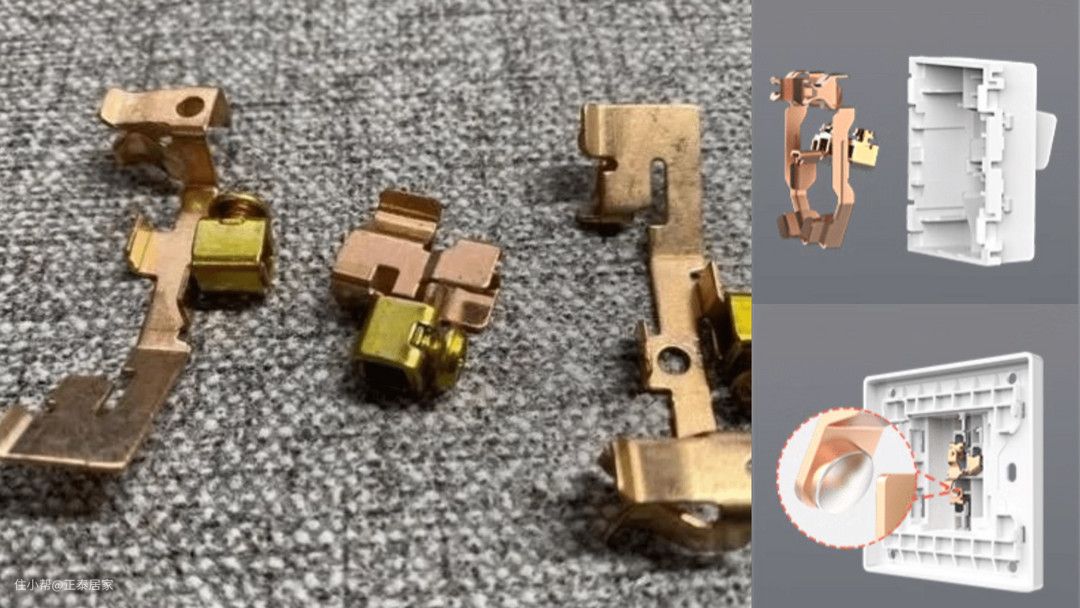 载流件材质一般为铜合金,等级:锡磷青铜(黄偏红色)>黄铜(黄色)>其他含铜合金,锡磷青铜是目前应用最多的开关插座载流件材料,具有导电性好,温升低、抗疲劳、弹性好、耐磨性等优势。触点作为开关过程中导电零件的接触点,触点接触面越大,触点含银量越高,导电性能越好、耐电弧、抗烧结熔焊;选购优先级则为:银合金触点>铜片镀银触点。这样能确保插座又耐用又安全。