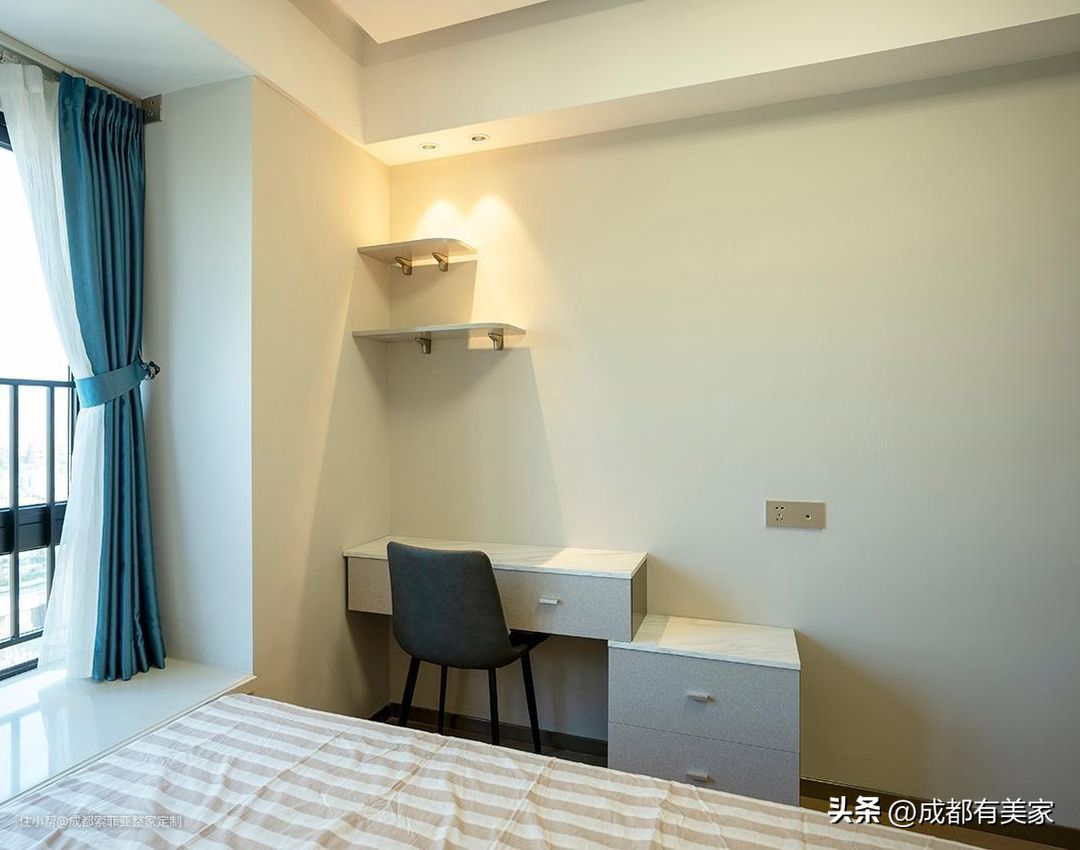 这款月光白不偏蓝也不偏红,但整体看上去却略显温暖,和深灰色搭配,沉稳大气不过时,适合现代风卧室使用