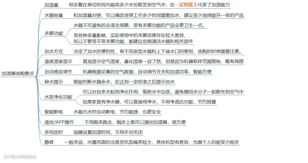 - 不同价位的加湿器,在功能指标相近的情况下,实际使用效果差异不大,具体挑选时,细节是取胜之处。