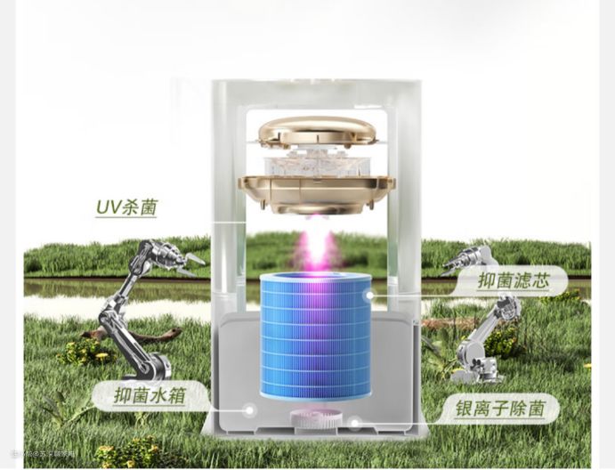 airx H8还拥有四重抑菌,水箱和滤芯都是抑菌材质,配合底部的银离子抑菌模块和紫外线的杀菌灯,对于敏感人群来说体验不止好一点。