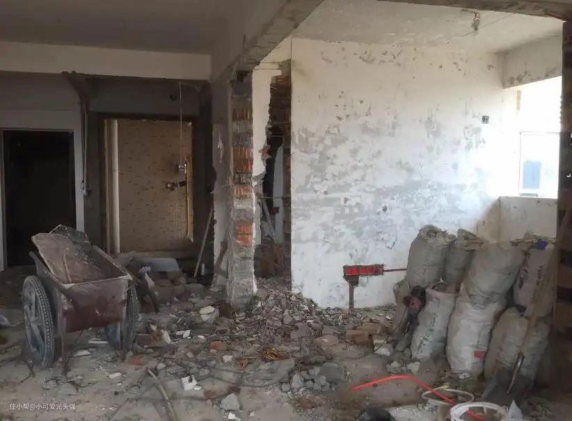 ②主体拆改:主体拆改是最开始的一个项目,主要包括拆墙、砌墙、铲墙皮、拆暖气、换塑钢窗等等。拆改完的垃圾,要及时清理出去,保证室内的清洁,也是为了方便施工。