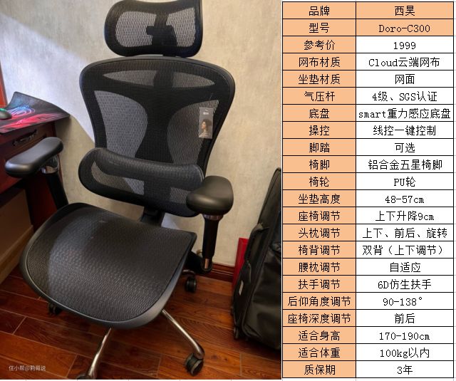 适用人群:西昊Doro-C300的坐垫48cm有点高,最高可以调节到57cm,适合身高在170 - 190cm,体重90kg以内的人使用,Cloud网布有点软,不建议大体重的人选择。