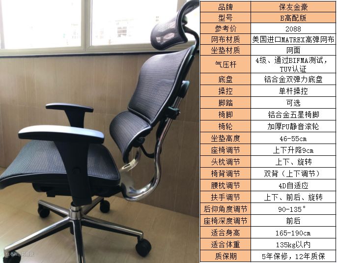 适用人群:保友金豪B的坐垫高度为46cm,最高可以调整到55cm,适合身高在165 - 190cm,体重135kg以内的人使用。