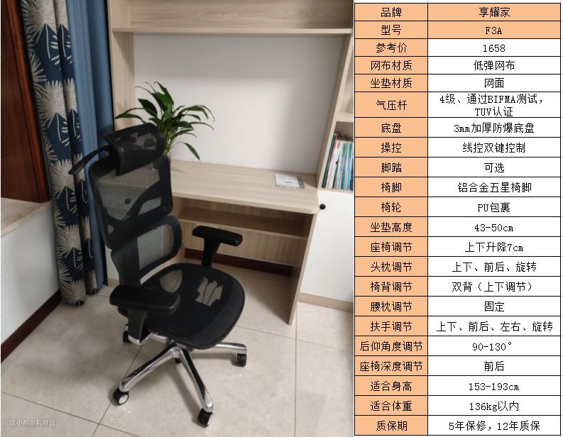 适用人群:享耀家F3A坐垫高度为43cm,最高可以调整到50cm,适合身高在153 - 193cm,体重136kg以内的人使用。