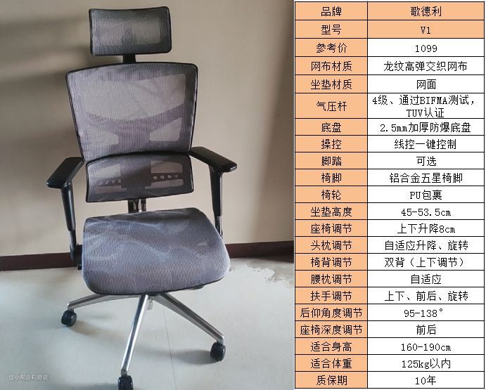 推荐理由:歌德利V1这款人体工学椅在材质和做工上都还不错,升级了4级TUV认证气压棒,龙纹高弹网布,4D自适应腰枕,底座也升级成了线控,比普通杆控底座操作时更加顺滑,头枕、椅背、腰枕、扶手、后仰角度、座深都可以进行调节,对各种身材的兼容性更好。