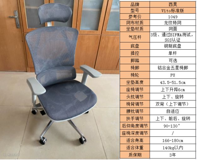 推荐理由:西昊Vito标准版作为一款1000元左右的座椅,网布采用的是高弹龙纹特网,透气性好、弹性好、耐用度高、久坐不易变形;背靠上使用腰背分离式设计,自适应腰枕比较柔和,对腰部的支撑性好,椅背高度可以调节,能把腰枕调到适合自己身高的位置;还有头枕、扶手、后仰角度等都可以进行调节,特别适合经常需要久坐的人使用。