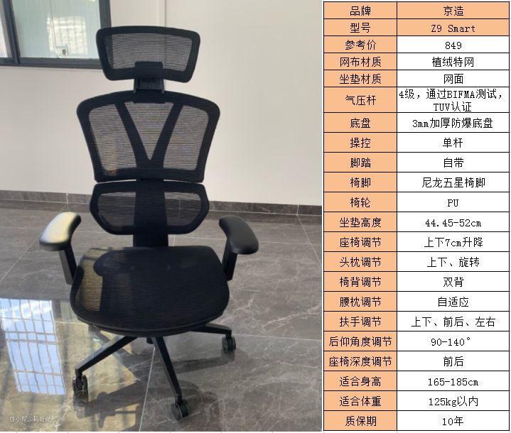 适用人群:京造Z9 smart坐垫高度为44.45cm,最高可以调整到52cm,适合身高在165-185cm,体重125kg以内的人使用。
