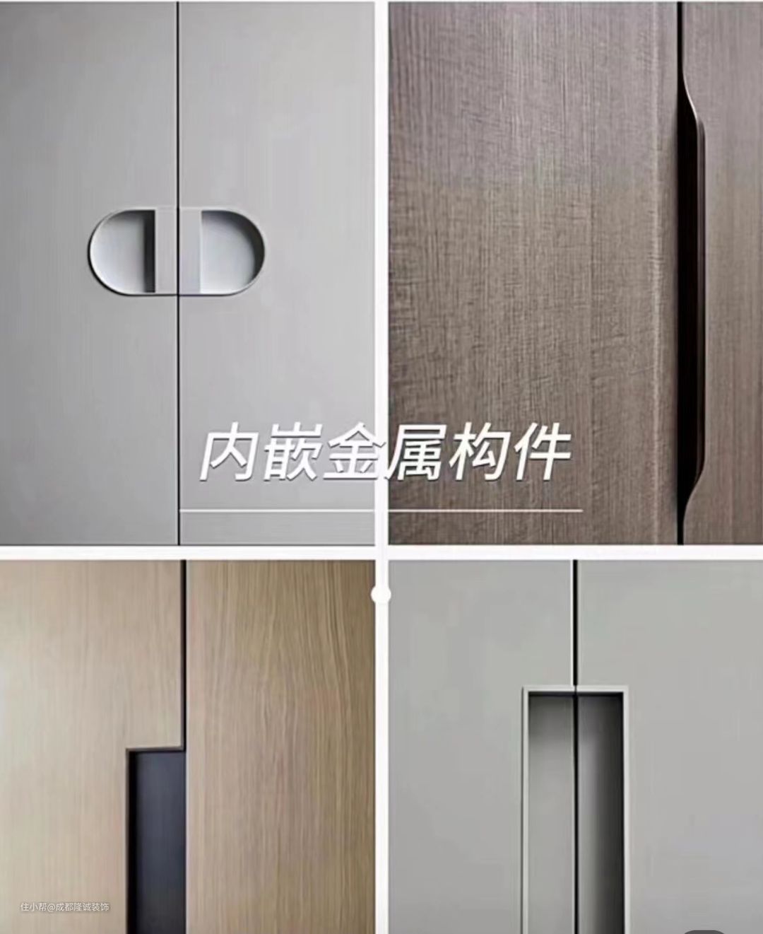 需要在门板内侧开槽预埋金属件,原理与铣槽拉手类似,适用于厨卫空间。