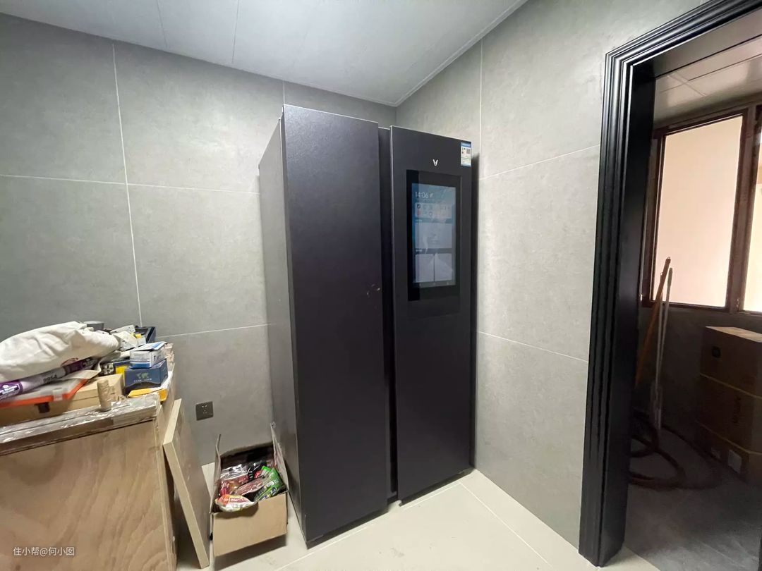 看来看去,最后选了这款云米640L的,这款冰箱的外形真的好看,颜值太高了,表面是哑光灰色的,手感很好,又不会留指纹,配我家厨房灰色大砖正好,很有质感,带除菌保鲜的,带大屏触摸控制,科技感十足,还能追剧,刷菜谱,别担心,真的没广告!