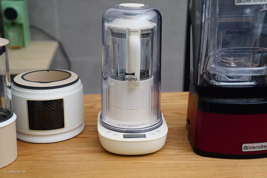 Bruno,价格比蓝宝贵一点点,也是网红机型了,比蓝宝好看,但是功能上基本一致的,多一个分次投料的功能,静音效果基本没有,如果对比选的话,颜值党选Bruno,功能党选蓝宝
