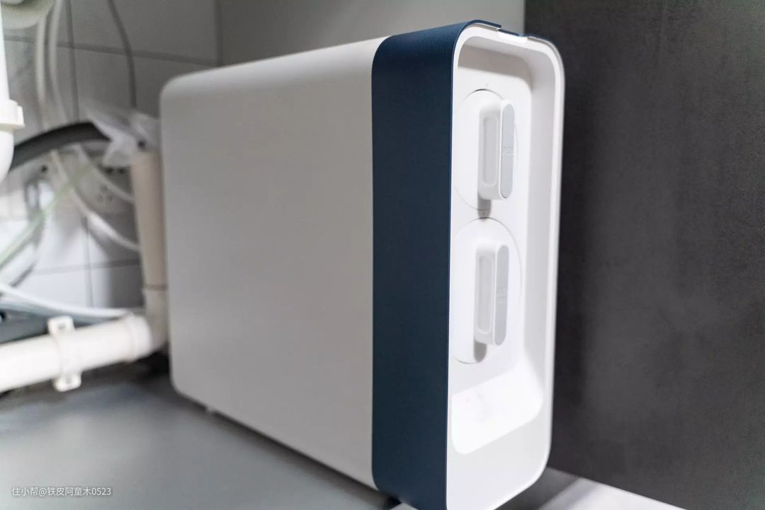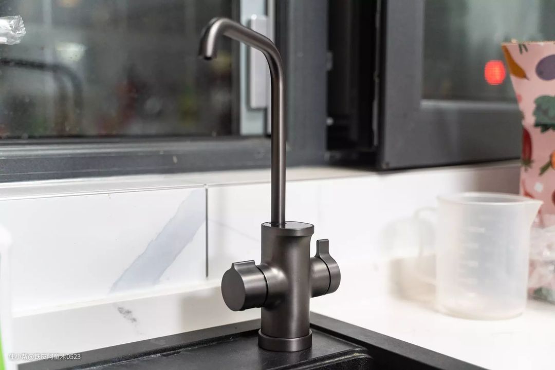 值得一提的是,这款净水器配备的是双出水龙头,水龙头左右具备两个旋钮开关。