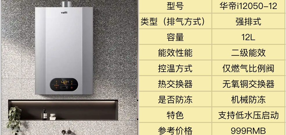 点评:千元以下必看热水器,正负0.4度恒温,几乎感受不到水温变化,同时兼具三档变升(10/11/12L)功能,省水省钱不浪费。0.01Mpa低水压启动,不足正常水压的1/10,老城郊区均可使用。