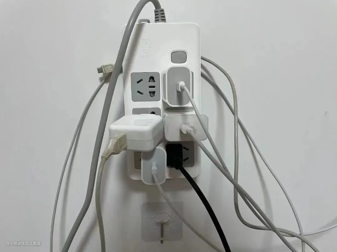 所以,我家装修时,就想着提前把电路设计好,能不用插排坚决不用,宁可多留插座,也不要后期走明线。