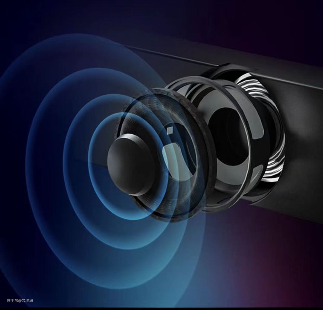 同时搭载四单元的大功率音响,两个高音扬声器、两个低顿扬声器,超宽覆盖频段、还有独立的腔体设计。