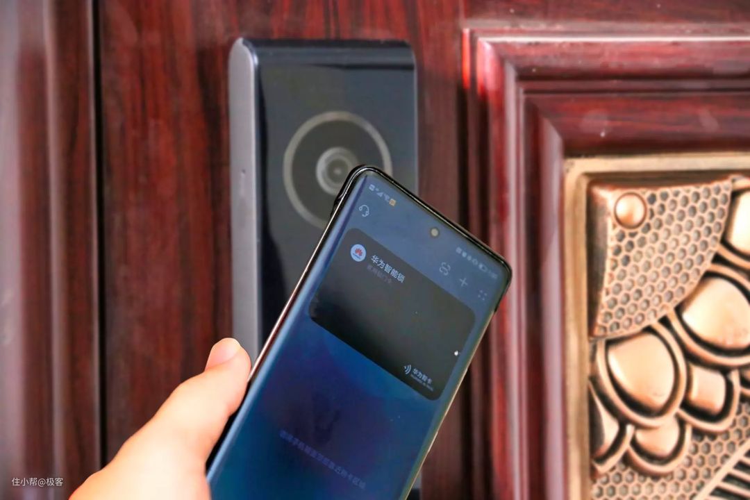 华为智能门锁 SE 猫眼版支持NFC解锁功能,使用APP添加手机解锁后,在钱包中就会多了智能锁的门锁钥匙,将手机靠近面板上的NFC区域时,就可以自动解锁了。就跟平时坐公交车感应付钱一样,这期间手机都不用亮屏就可以操作。