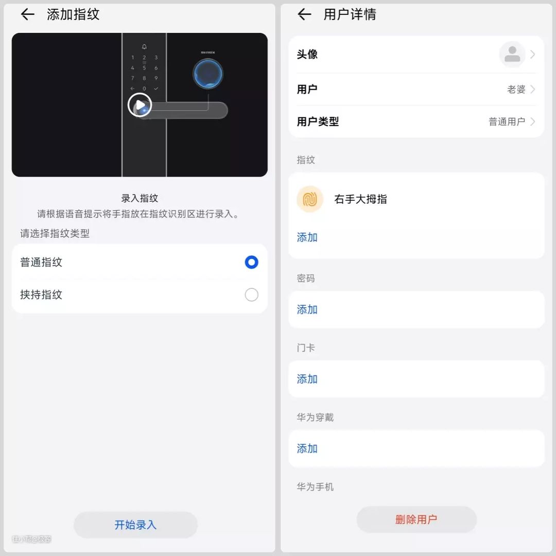 在录入指纹的界面,我们可以看到还有个挟持指纹,我们也可以叫它防挟持指纹,就是在自己被人胁迫开锁的时候专门录入的指纹。当使用这个挟持指纹开锁时,门锁也会照样开启,面板上不会有任何变化,也不会有报警声,但是其他安装华为智慧生活APP的用户会受到求救信息。这个时候收到信息的家人可以第一时间报警,从而保证被胁迫者的安全。