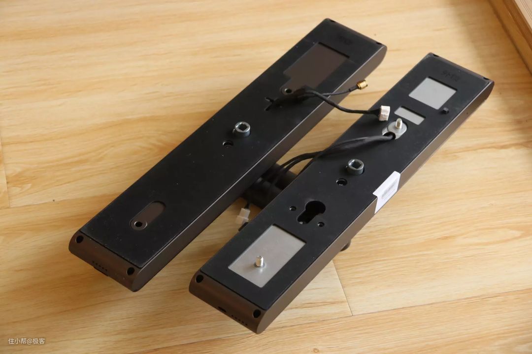 这款门锁的采用了半自动的锁体,支持常规尺寸的天地钩。如果以前是是霸王锁体的用户,通过更换导向片也可以安装,但是天地钩无法支持。值得一提的是,这种半自动的锁体,在解锁的时候非常的静音,几乎听不到声音的那种,我特别喜欢。