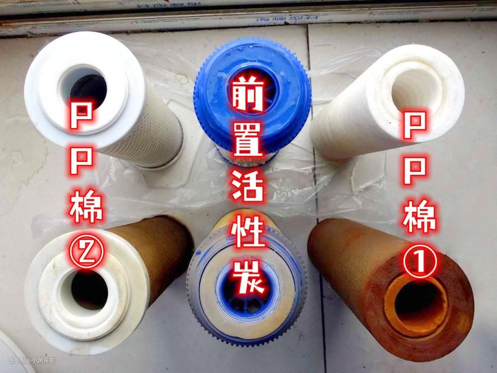 现在有很多净水机,会把两个PP棉滤芯和前置活性炭滤芯组合在一起,做成复合滤芯。这样的净水机,在外观上更小巧——看上去,只有3个滤芯。