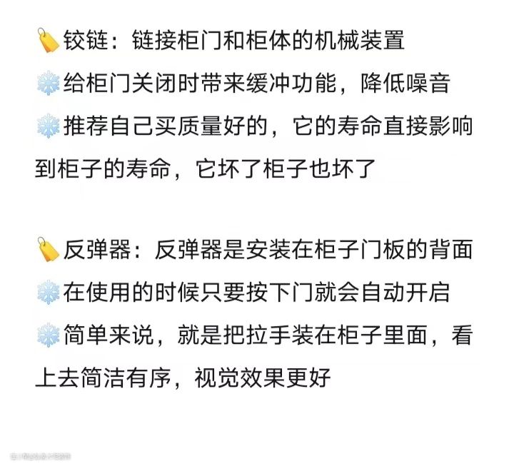 ☆铰链和反弹器是非常重要的,要提前做一些基础知识了解再去和公司谈