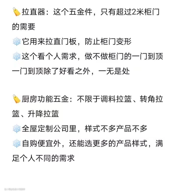 ☆然后就是拉直器和厨房五金,拉直器是必须超过2米为了防止后期出现问题才会需要,所以大多数都不会需要这个东西,至于厨房五金,这个是很重要的,要好好选取
