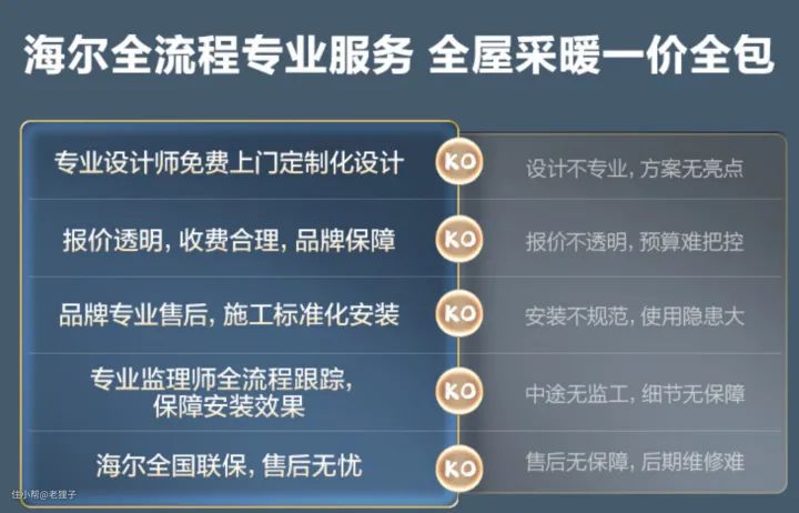 如果你因为买壁挂炉以后,还要重新安装管道或散热器,觉得麻烦花钱,因而放弃,可以看看海尔给出的全屋采暖用水解决方案,下单以后就会有专业的工作人员前来安装全部的供暖设,挺省心的喔: