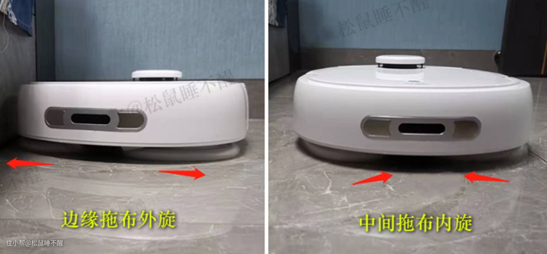 越到中间区域的时候,拖布就会改为向内旋转,不容易出现污渍飞溅的情况,扫地机器人的行走路线也变成了往复式交替擦拭地板,