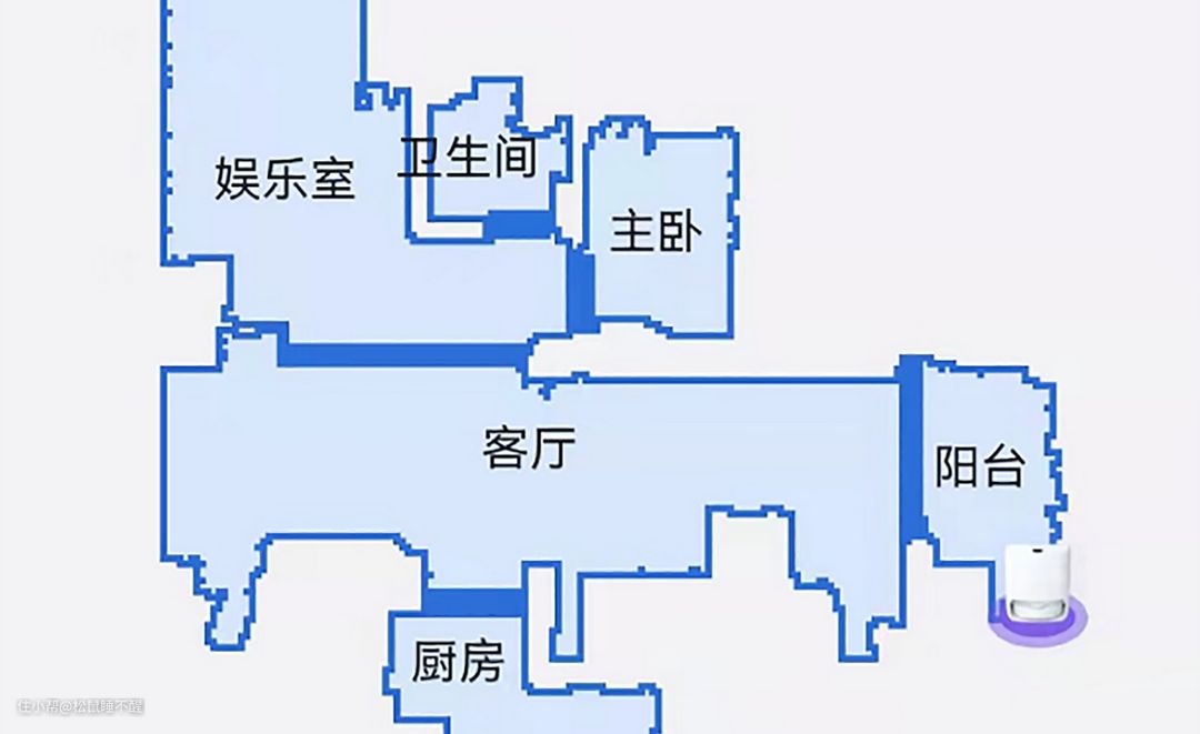 我们和原本户型图对比一下,除了大门口竖了个小狗围栏它过不去外,其他细小的角落它都探测到了。