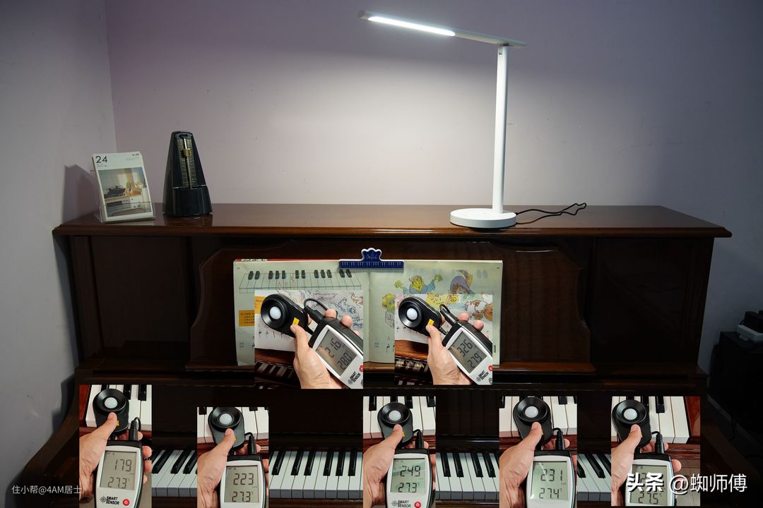 而之前台灯琴谱的亮度最高为326lux,琴键区仅为200lux左右。教育局规定,中小学生教室桌面亮度至少需维持在300Lux以上,中国《建筑照明设计标准GB50034》规定办公室桌面照明应保证500Lux。所以台灯拿来给钢琴照明的话,连最基本的亮度要求都达不到,在这个亮度下练琴、看琴谱对眼睛不利。