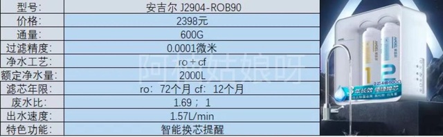 这款安吉尔魔方J2904-ROB90,拥有长达6年的RO膜片,大大减少了更换滤芯的频率,减低了后期的成本。