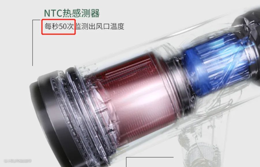 智能控温是通过出风口搭配NTC感温控件检测温度,吹风口温度才是真是吹到头发上的温度,相比机械式控制发热组件温度要精确太多了。