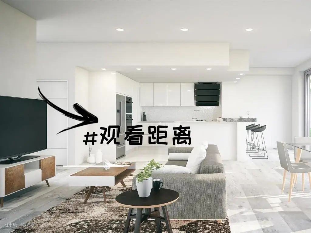 如果你的预算不足,只能买小尺寸电视,可以事先测量一下沙发前沿到电视墙之间的距离。如果还没有买沙发,可以测量沙发背景墙到电视墙之间的距离,并在这个基础上减去50cm。