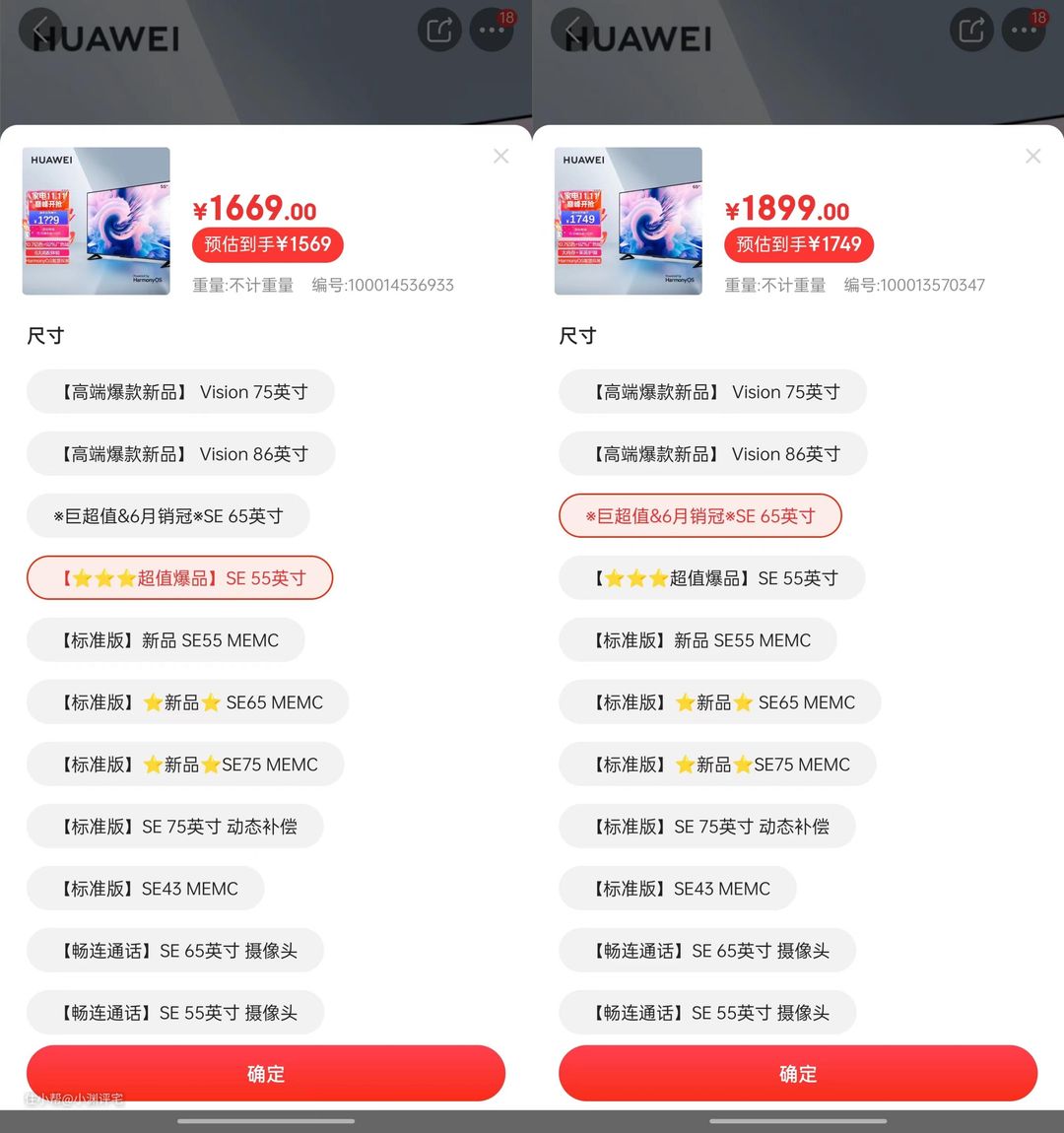 其它各个方面都一模一样的产品,仅仅是把55寸变成了65寸,价格提高了220元。