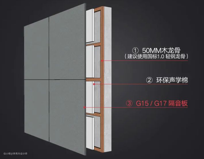 墙面想要更专业的隔音效果,可安装个打龙骨+隔音棉+隔音板。