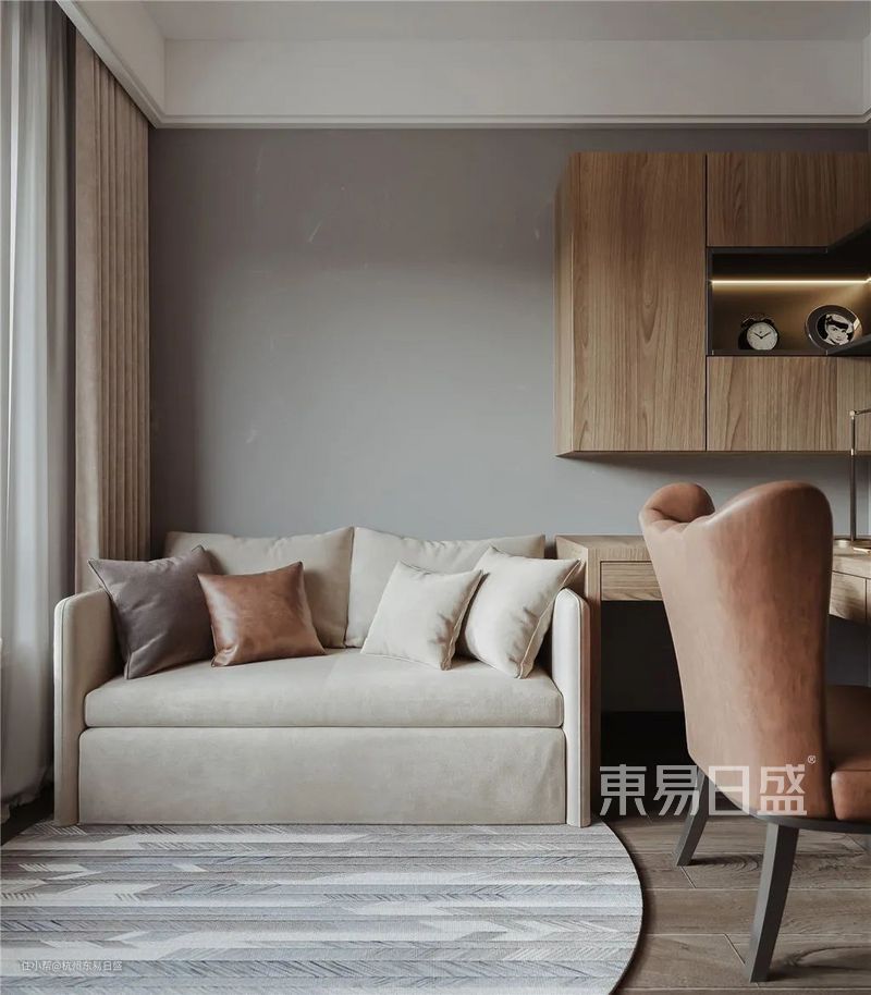 ◆米白色沙发和小地毯的铺陈,干净舒适,在光线的映照下,颇有几分诗意。真正舒适的家,每一个角落都可以放慢步调、用心感受。