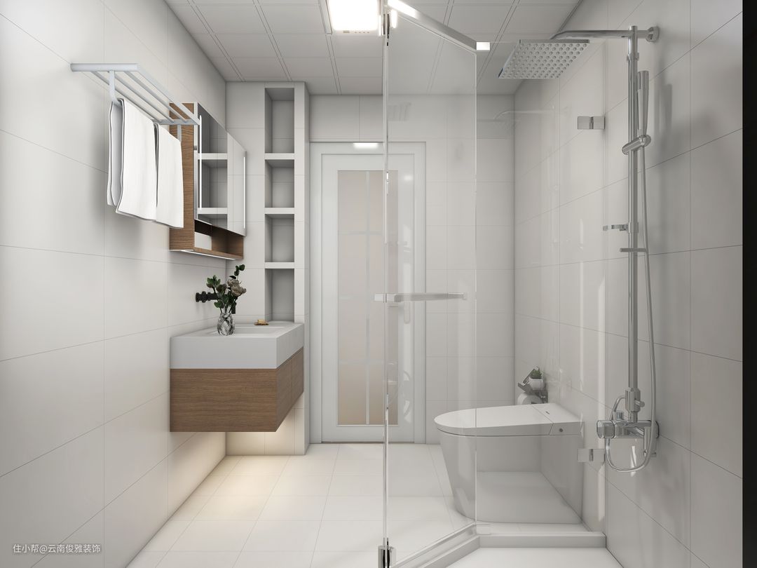 7、卫生间空间往往比较小,配色尽量浅色系,白色更显宽敞。