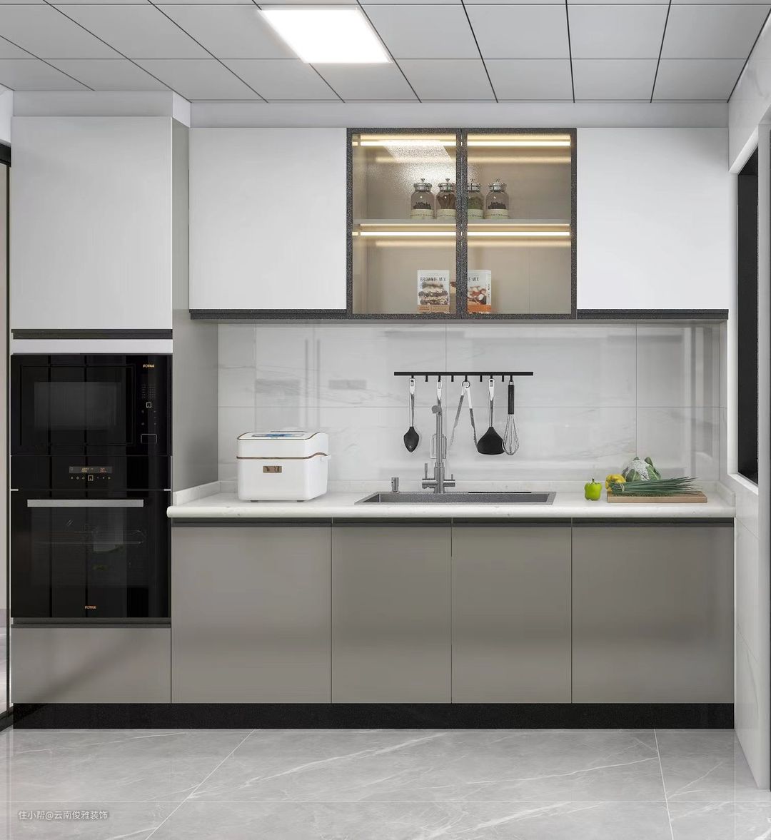 厨房灯光千万不能一个吸顶灯了事,会产生灯光盲区。建议吊柜下方增加灯带、水槽上