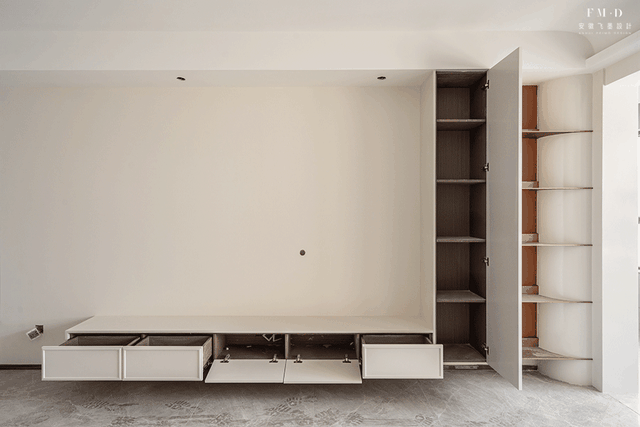 朋友每次来我家,都感叹还是我家的电视柜做得好。电视柜不仅做悬空设计,方便打扫卫生,而且柜子留一面不做抽屉,改成下翻板设计,隐形插座开关,电器使用也方便,台面清爽又干净,分享给大家看看~