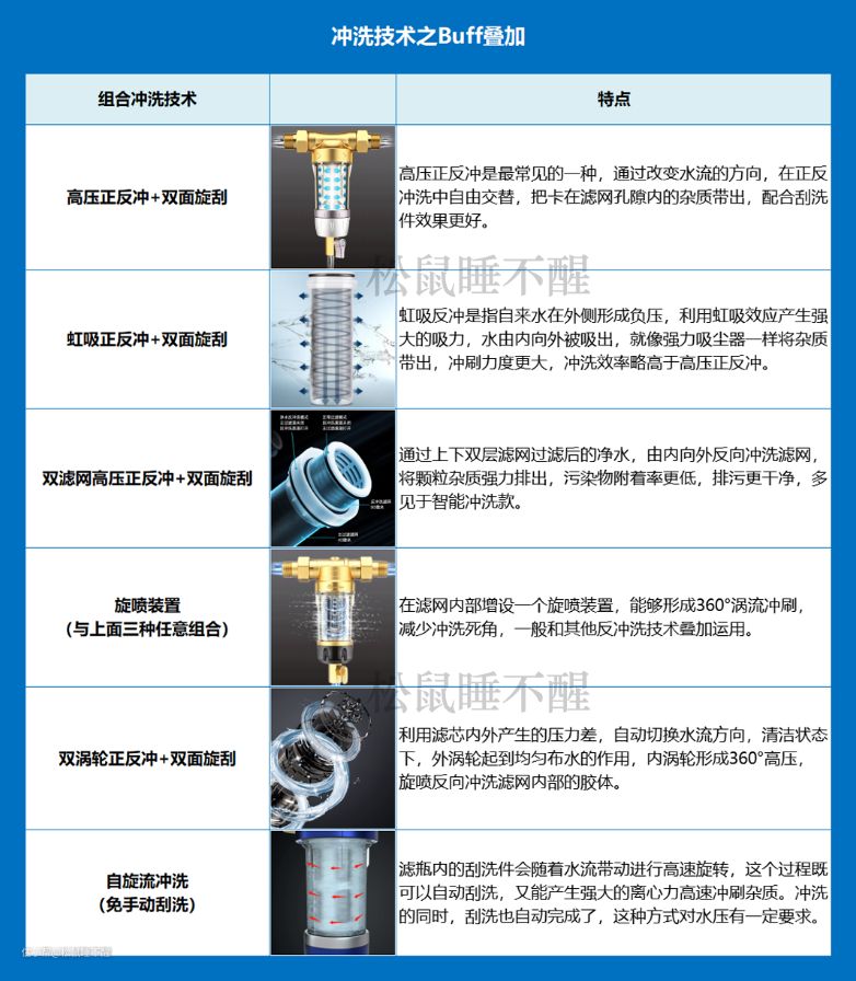 虽然冲洗方式现在都以“反冲洗”为主了,而且还衍生出了不少组合冲洗模式,这些方式在效率上还是存在一些微差,冲洗能力弱的使用年限也相对短一些。