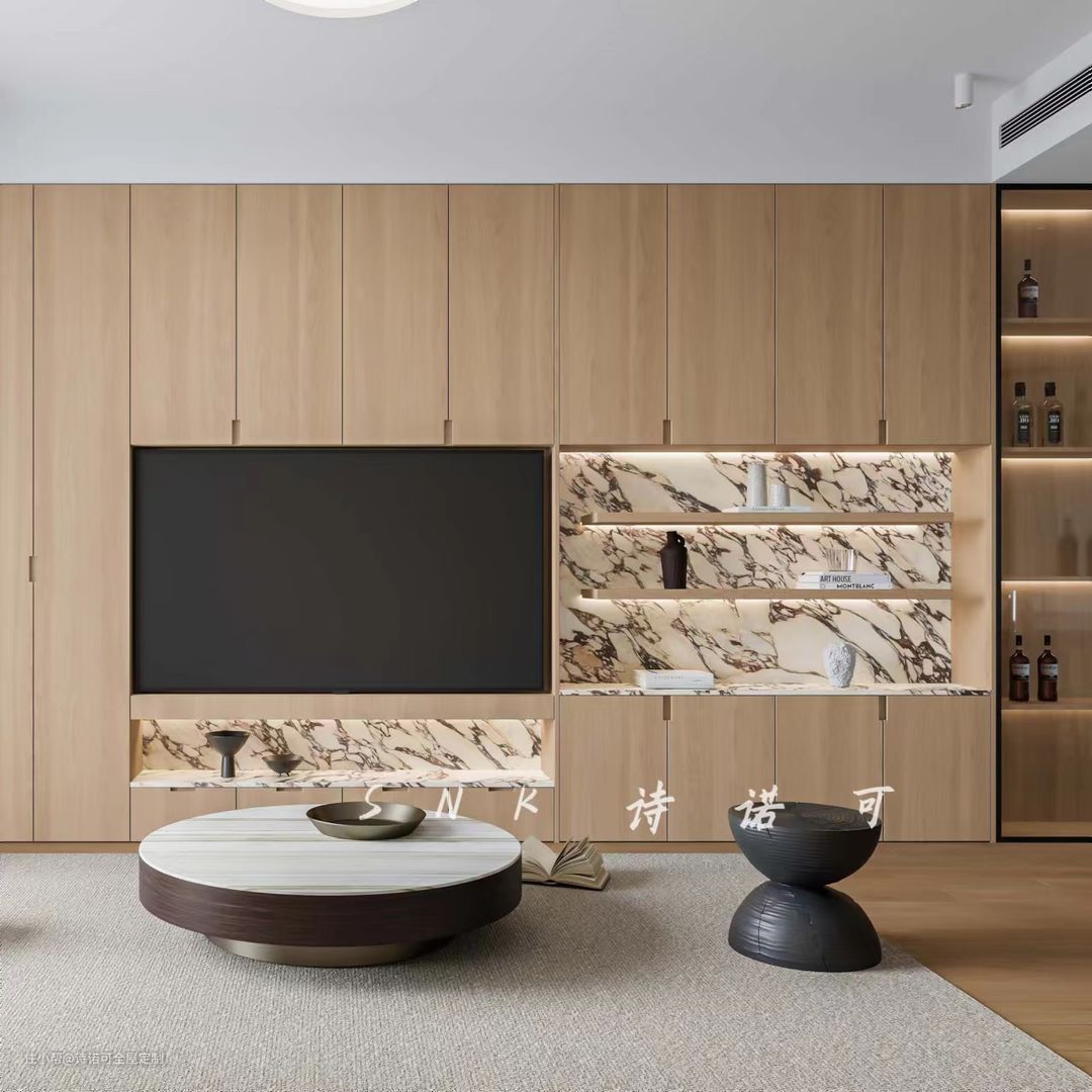 天然白蜡木搭配原木色,简静舒适、细腻而有质感的高级住宅诗诺可全屋定制2022-11-11使用天然白蜡木和天然大理石作为空间的主要材料。这个空间的主要亮点是起居室和书房是如何相互连接的。这也是一个设计特色,以建立两个空间之间的关系。