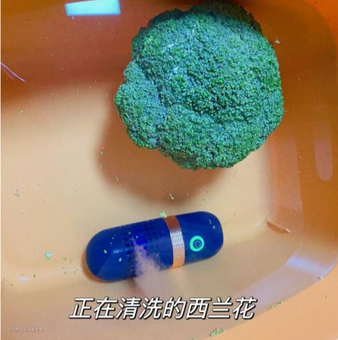 大家平时买菜的时候也是把各类菜品都放在一起清洗,现在直接都放在水盆中,然后把净化仓放进去就可以了。