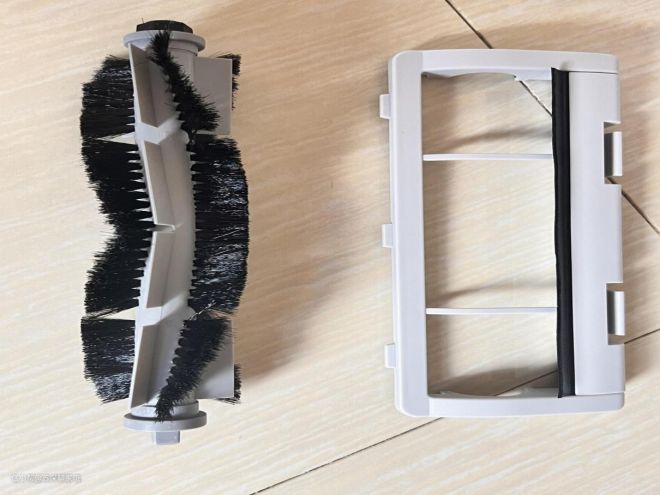 可以仔细来看一下它的吸尘口,胶毛一体刷的设计可以让灰尘更好地被吸附并且在一定程度上减少头发缠绕在主刷的情况出现,这对于家庭环境多样化的地面环境来讲非常友好。此外,以内还贴心赠送了清洁刷,安装在大尘盒的滤网盖上,它的外观有点像小鸟,可以用来帮我们切割缠绕在中刷上的毛发,还能够协助我们清洁尘盒和滤网上的灰尘。