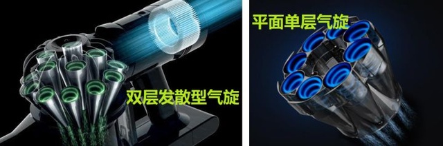 Dyson的吸尘器,靠的是直流电机技术和多锥分离结构,前者可以把吸尘器做得很小,后者使得吸尘器长期使用后吸力不下降,且几乎没有耗材。