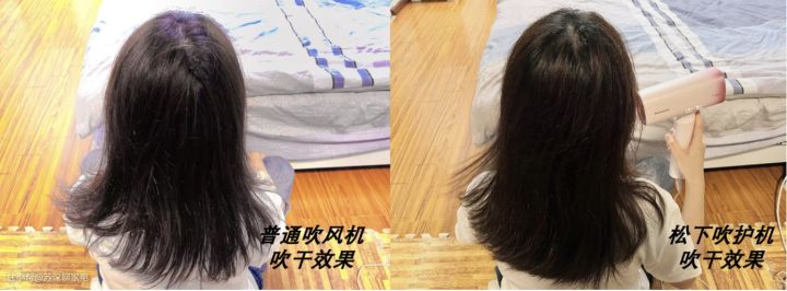 我用松下纳诺怡吹护机和家中的普通吹风机进行了实测对比,用以测评松下纳诺怡润护+吹护机三重控温配置的效果。