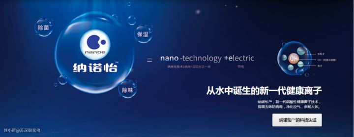 纳诺怡又名nanoe,由纳米技术英文nano-tech-nology中的[nano]与带电的单词elecrtic中的[e]结合而成,是一种基于松下独家黑科技产生的新一代弱酸性健康离子。
