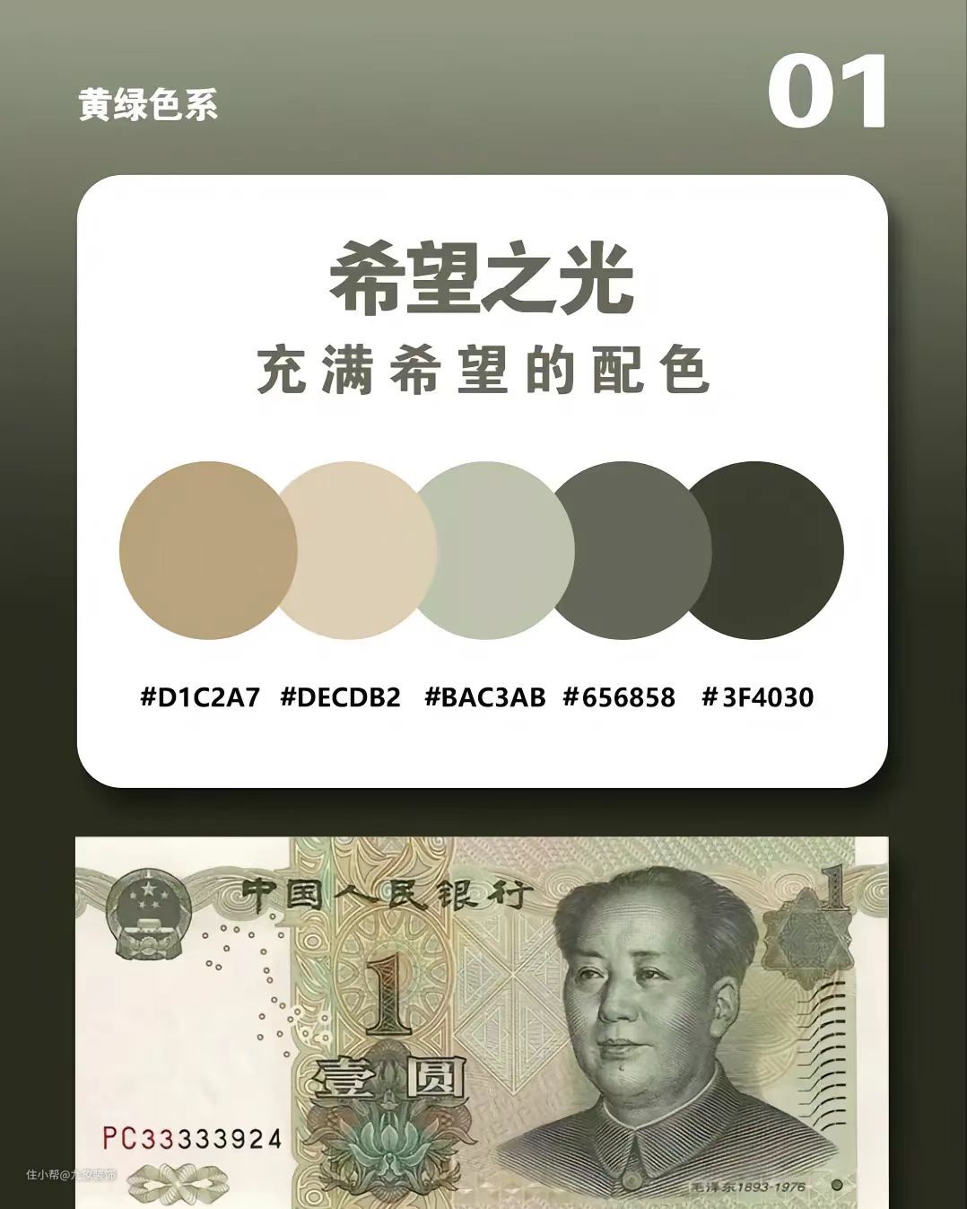 一元人民币配色趋近清新的又有活力的淡绿色,给人一种感觉置身于于自然的感觉,如果我们想要追求自然清新的家,不妨跟着一元人民币的配色来进行家装的配色,最后效果肯定是想要的感觉。