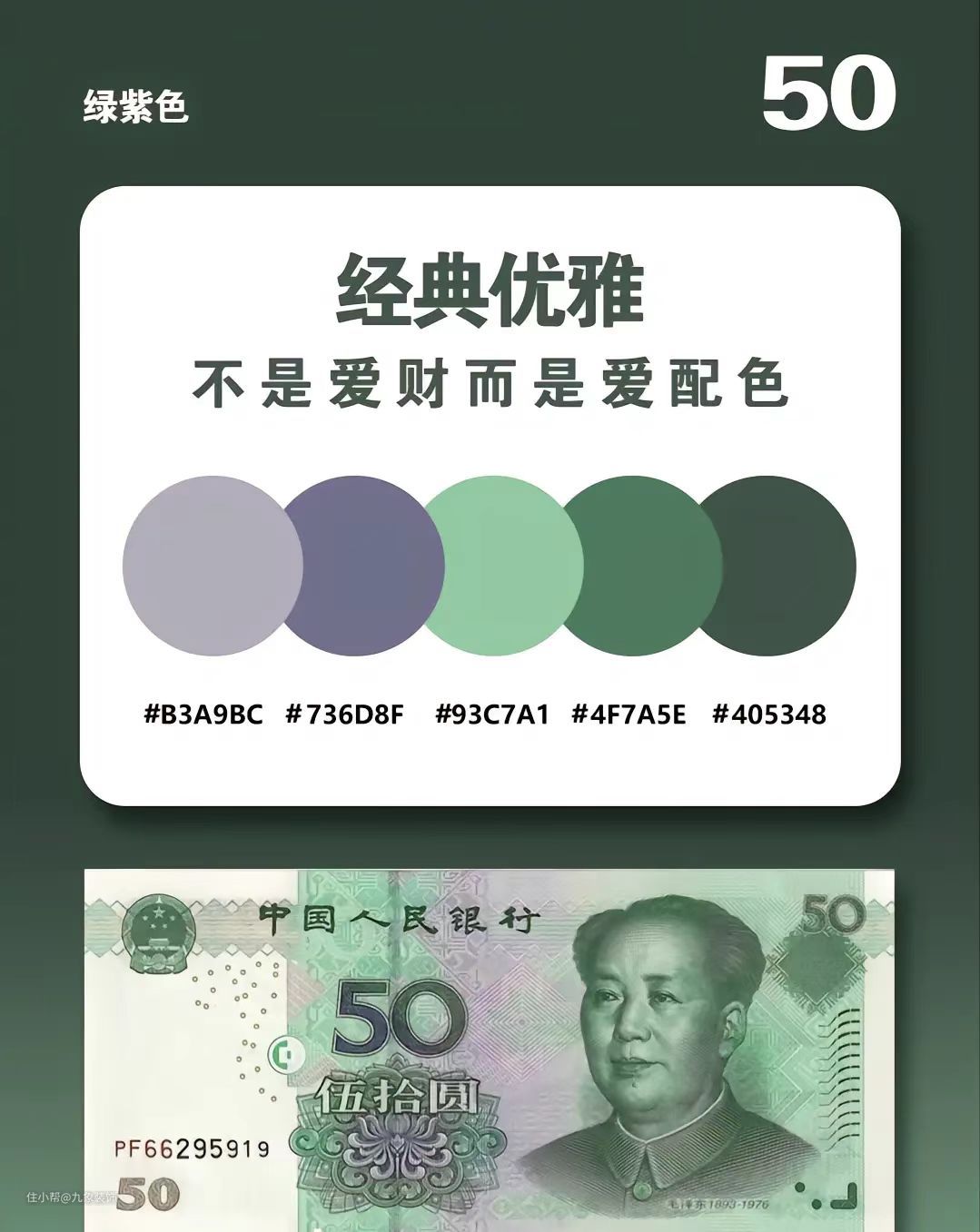 五十元人民币的配色是一种莫兰迪绿色系,更加适合做一个绿色家居的的搭配,营造一种绿色田园风格,全屋的家具可以自由随性,简约实用,不经意间就成了一种休闲式的浪漫。