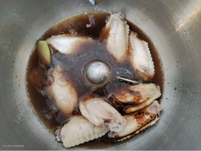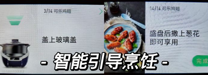 可以看到,屏幕上明显指引了我们该什么时候放鸡翅,什么时候放调料,什么时候放上可乐闷煮。整个流程非常清晰,我也可以放心的把味道支配权交给苏泊尔,然后就是静静等待的时间了。